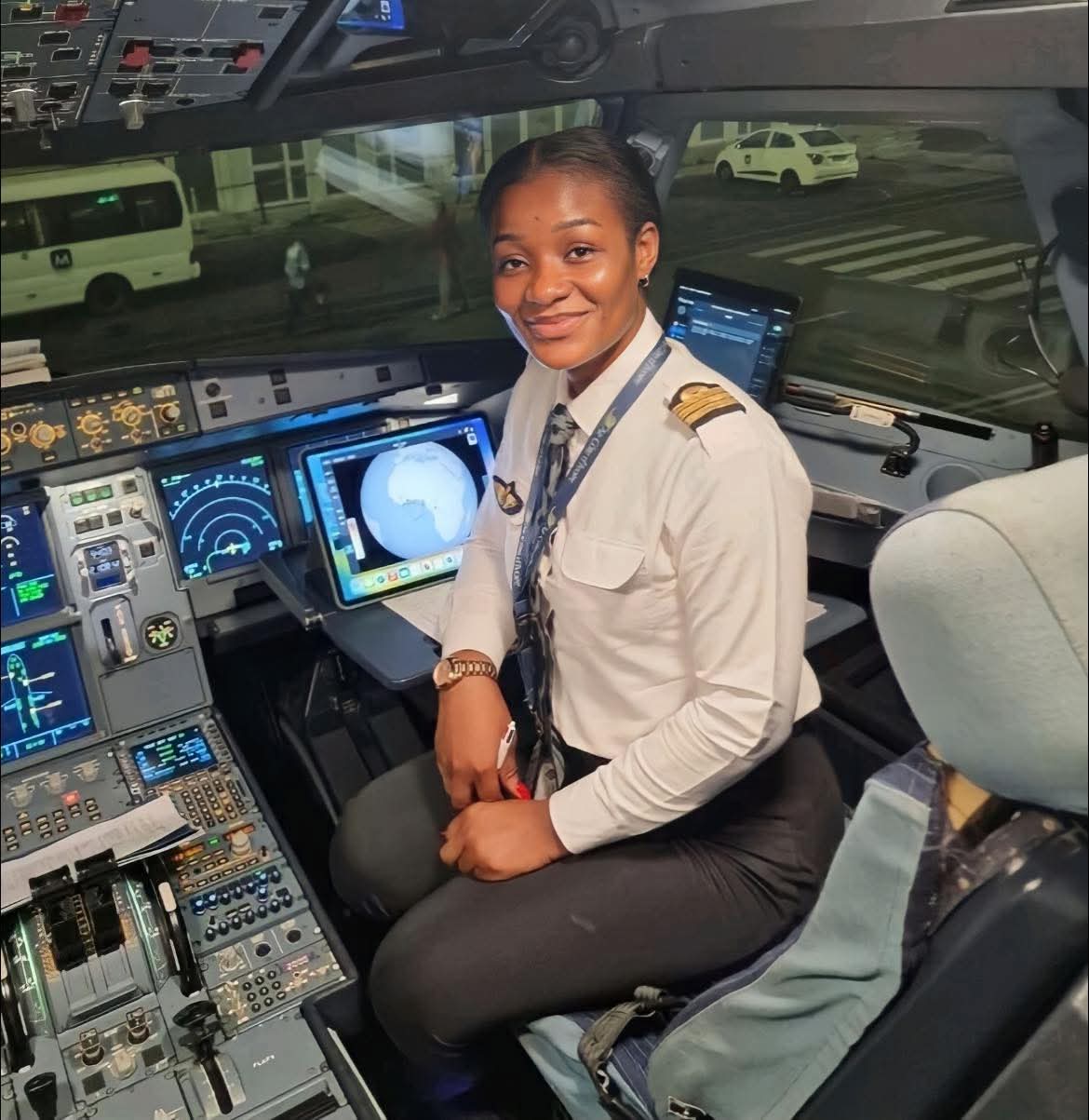Après avoir obtenu son brevet de pilote, elle fait l’histoire en devenant la première Ivoirienne aux commandes d’un avion de ligne. D’abord qualifiée sur Dash Q400, elle est aujourd’hui copilote sur le majestueux Airbus A320.